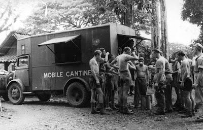 | 25 Juli 1947: Pasukan Belanda menghilangkan haus di kantin berjalan (klik untuk memperbesar | © spaarnestad) |