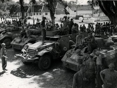 | 22 Juli 1947: Pasukan marinir Belanda yang mendarat di Pasirputih memasuki wilayah Klakah (klik untuk memperbesar | © spaarnestad / gahetna) |