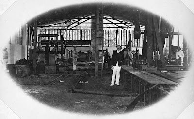 | Di bagian dalam sebuah pabrik gula, kemungkinan bagian bengkel (klik untuk memperbesar | © NGA) |