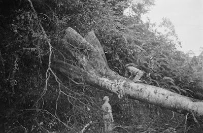 Peristiwa: Pasukan Belanda mencoba mengenyahkan batang-batang pohon yang ditumbangkan TNI guna menghalang gerak maju militer Belanda saat Aksi Polisionil 1 di sekitar Padang. Pasukan Belanda juga menghadapi rongsokan truk yang dipakai dipasang sebagai barikade.