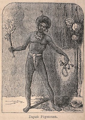 Dari kumpulan dokumen lama di Wellcome Collection: Gambar kuno tentang dukun Dayak