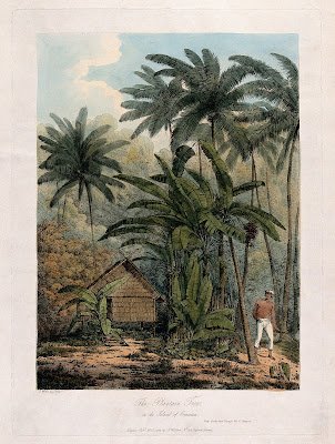 Gambar di atas memperlihatkan seorang pria Krakatau di dekat sebuah rumah yang dikelilingi berbagai pepohonan.