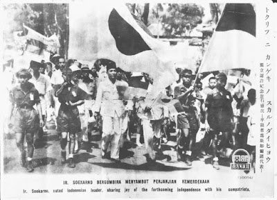 Peristiwa: Ketika Sekutu kembali menduduki Singapura, mereka, di sebuah bekas kantor Jepang, menemukan foto yang menampilkan Soekarno berbaris bersama warga Indonesia yang membawa bendera Merah Putih dan Matahari Terbit. Kemungkinan besar foto ini merupakan bahan propaganda karene berisi tulisan dalam bahasa Indonesia, Inggris, serta huruf Kanji dan Katakana, yang menandakan banyaknya pihak yang dituju oleh penyebaran foto ini.
