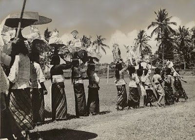 | Mengusung sesajen, 1938 (klik untuk memperbesar | © Alphons Louis Marie Antoine Hubert Hustinx / fotomuseum) |