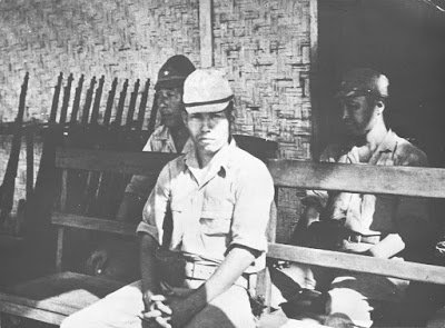 | Dua tentara Jepang menyaksikan tanpa semangat bagaimana pembebasan kamp akan difilmkan di mana pintu gerbang kamp secara simbolis akan dibuka (klik untuk memperbesar | © Beeldbank WO2 / NIOD) |