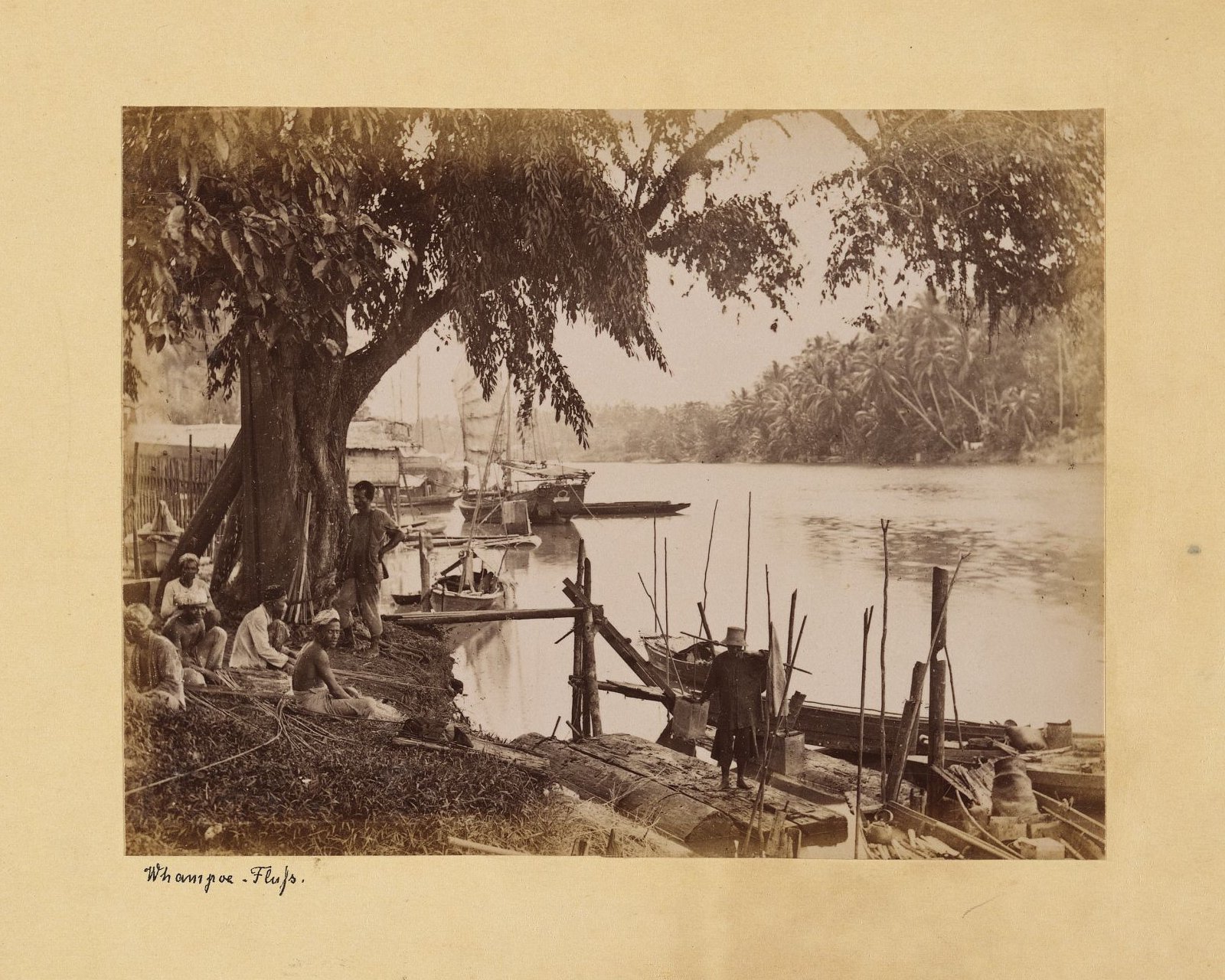 | Perahu bertambat di sungai Wampu (klik untuk memperbesar | © NGA) |