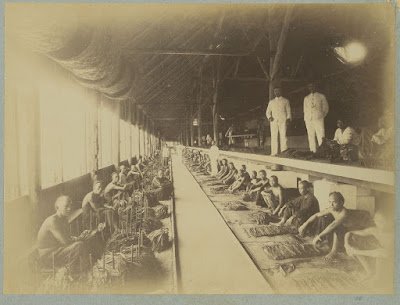 10. Pekerja Tionghoa, wanita Jawa, dan pegawai Belanda di gudang pemilahan dan penyusunan daun tembakau
