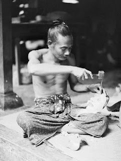 Peristiwa: Seorang pandida di Sanur memahat topeng, seorang pemuda mambakar daging penyu.