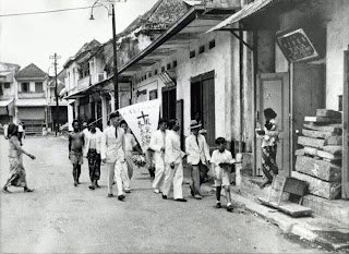 Peristiwa: Sekelompok orang berkeliling di sebuah daerah pecinan di Jakarta untuk meminta sumbangan dari rumah ke rumah untuk organisasi Palang Merah.