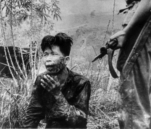 | Januari 1965: Penahanan seorang “sukarelawan” Indonesia yang berlumuran darah. (klik untuk memperbesar | © Russell Knight/BIPs/Getty Images) |