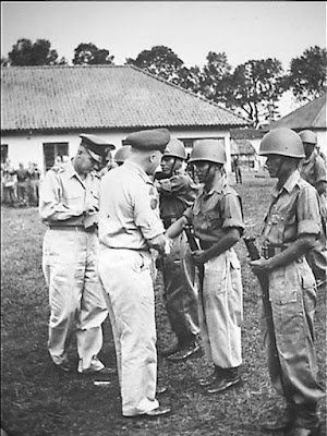 Peristiwa: Kolonel H.J. de Vries, komandan Batalyon 33, menghadiri pelantikan kesatuan militer lokal didikan Belanda di Cimahi. Pasukan ini dikabarkan terdiri dari warga Madura dan Sumatera (kemungkinan Sumatera Utara karena catatan foto menyebut a.l. nama Jan Panggabean, Siregar).