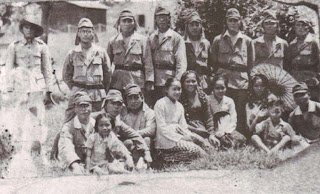 Peristiwa: Beberapa tentara Jepang berfoto bersama sekelompok gadis dan anak-anak Indonesia