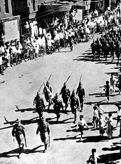 Peristiwa: Pasukan Jepang berparade memasuki wilayah Hindia-Belanda.