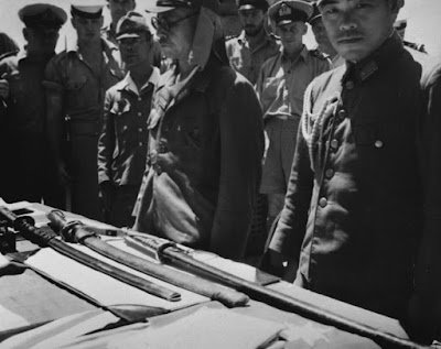 11 September 1945: Kolonel Kaida Tatsuichi (kiri) dan Mayor Minori Shoji (kanan) mewakili militer Jepang dalam acara kapitulasi