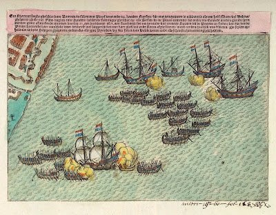 Peristiwa: Lukisan pertama menggambarkan 4 kapal Belanda yang berada di perairan Banten. Lukisan kedua memperlihatkan Madagaskar di bagian atas (tidak kita acuhkan), dan Pelabuhan Banten di bagian bawah. Gambar Banten ini a.l. menunjukkan posisi Keraton Sultan Banten (A), Mesjid Raya (H), kawasan pecinan (I), kediaman Panglima Perang (L), Syahbandar (N), kediaman Panglima Laut (O), kediaman Senopati (R), kawasan pedagang Tionghoa (T), dan gudang amunisi (Z).
