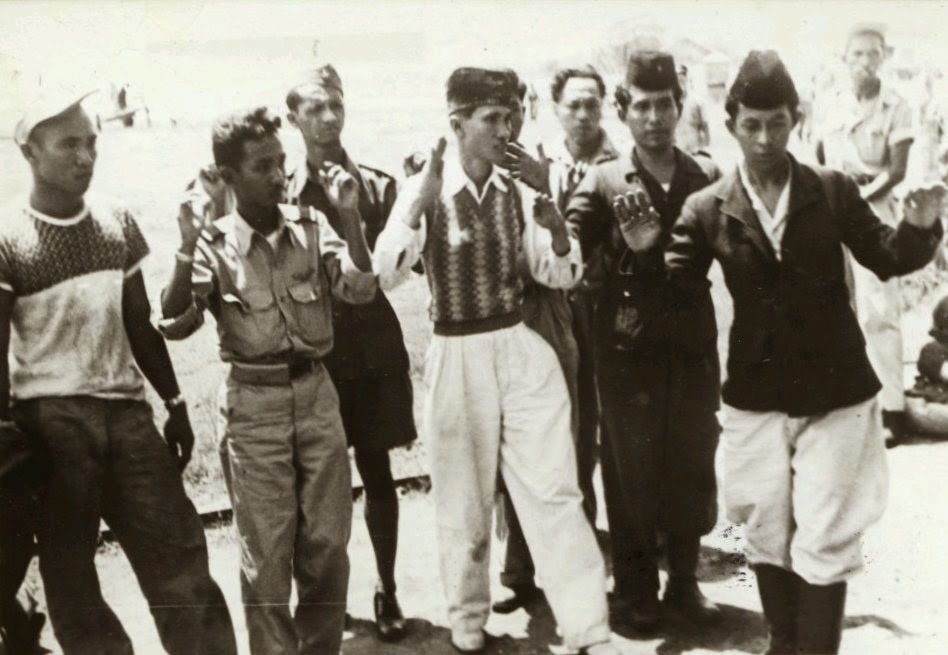 Catatan: Di foto atas penangkapan tampaknya dilakukan oleh kesatuan KNIL mengingat tidak ada tampang bule di sana. Lelaki di sebelah kiri cukup memberikan teka-teki mengingat pakaiannya tampak tidak begitu lazim untuk tahun 1940an.