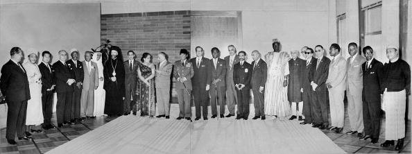 | Dari kiri ke kanan: Adoula – Ibrahim Abboud – Bourguiba – Soekarno – Bandaranaike – Nehru – Nkrumah – Osman Daar – Selassie – Tito – Mahendra – Daoud Khan – ? |