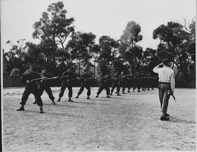 Latihan penggunaan bayonet untuk para pemuda Belanda di bawah asuhan Sersan Langer dari AU Australia