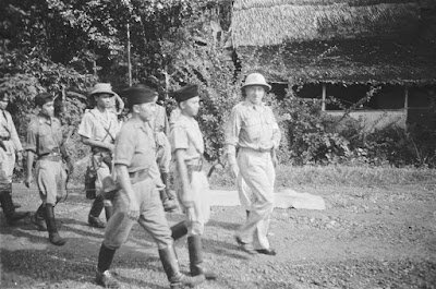 | Kolonel Mayer (perwira KTN asal AS) berjalan bersama para perwira TNI menuju barisan pasukan TNI (klik untuk memperbesar | © gahetna) |