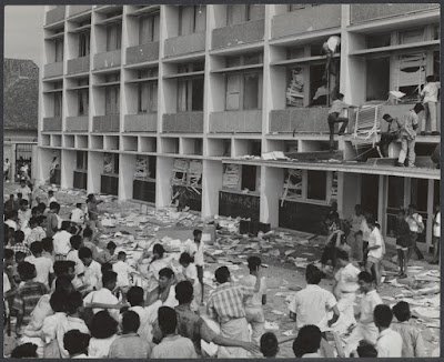Peristiwa: Massa anti Barat, anti Inggris, dan anti Malaysia merusak gedung Kedutaan Besar Inggris di Jakarta, memaksa para staff kedutaan harus mendapat perlindungan dari tentara.