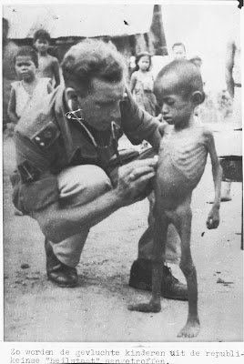 - Bahasan di awal: Kemiskinan ada dari dulu hingga sekarang, termasuk di masa penjajahan Belanda, dan kemudian dikabarkan meningkat tajam di masa pendudukan Jepang. Proklamasi kemerdekaan juga tidak menyulap kemiskinan menjadi sirna; perang kemerdekaan malah makin mempersulit pelaksanaan pengentasan kemiskinan karena prioritas para pihak berada di memenangkan konflik. Banyak foto yang menunjukkan kemiskinan semasa perang kemerdekaan: orang yang berpakaian compang-camping, berbadan kurus kering, luntang-lantung, dan warga yang senang mendapatkan makanan atau layanan kesehatan yang dibagikan pihak Belanda. Ini dimanfaatkan oleh beberapa pihak untuk menunjukkan bahwa masyarakat yang berada di bawah kekuasaan Republik Indonesia sangat menderita; dan bahwa Belanda datang untuk mengubah suasana ini ke yang jauh lebih baik.