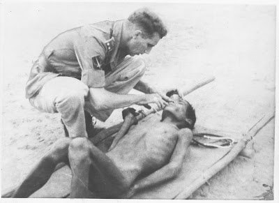 - Teks asli penyerta foto:Deze man heeft met levensgevaar de demarcatielijn weten te behalen. Een nederlandse arts onderzoekt de ongelukkige. Medisch onderzoek te velde (KNIL).