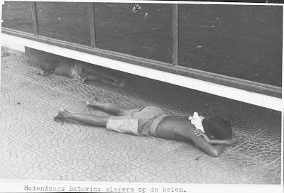 - Teks asli penyerta foto:Hedendaags Batavia: slapers op de keien.