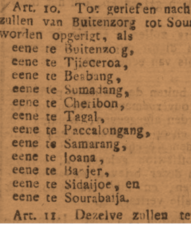 pos: Pos I: Bidara Tjina, Pos II Tandjoeng (15 paal dari Batavia), Pos III