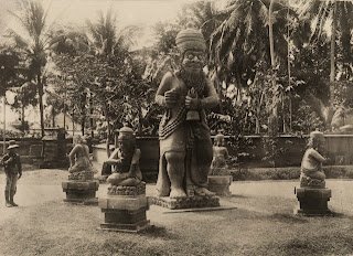 Peristiwa: Seorang polisi kolonial tampak berjaga di dekat sekumpulan patung