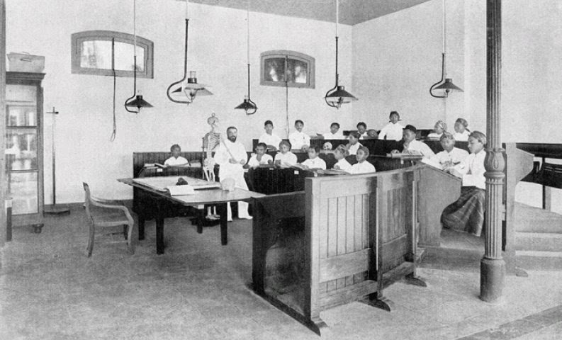 Catatan: Para mahasiswa kedokteran di masa itu telanjang kaki dan mengenakan kain serta pakaian adat sesuai daerah asal masing-masing.