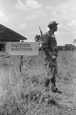 | Tentara Belanda bersenjata menjaga tempat berkumpulnya pasukan TNI (klik untuk memperbesar | © gahetna) |