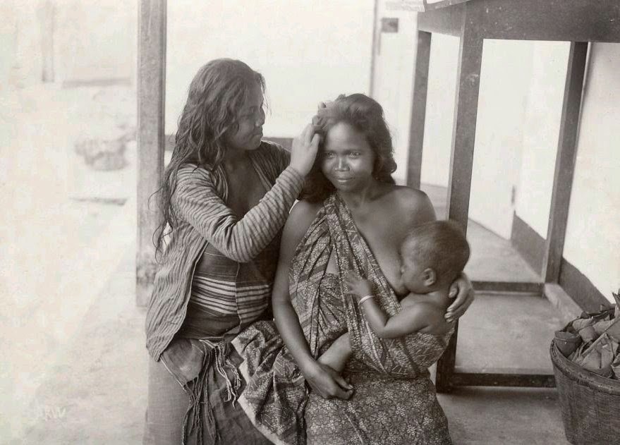 Wanita Yogyakarta menyusui dan mencari kutu, sekitar 1910