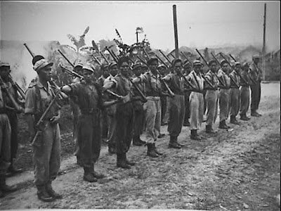 10. Foto-foto di bawah ini memperlihatkan kesatuan infantri KNIL yang ditempatkan Belanda di Samarinda. Para prajurit KNIL ini warga lokal, instrukturnya warga Belanda.