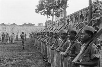 7. Foto-foto di bawah menampilkan pelantikan kesatuan baru polisi bersenjata, yang terdiri dari warga lokal yang setia kepada Belanda, di benteng Willem I di Ambarawa, 1 Maret 1948.